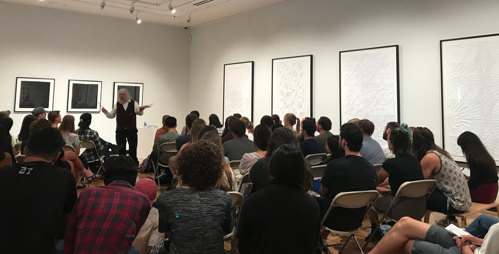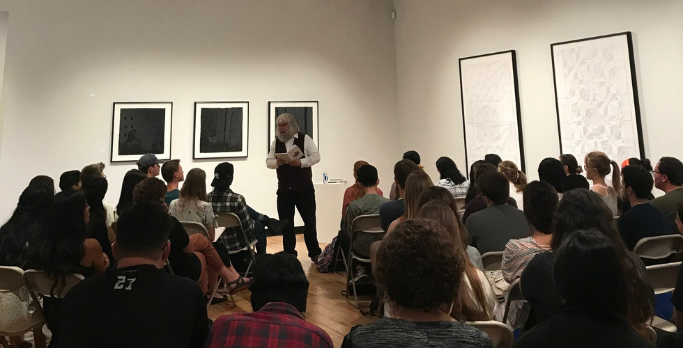 On Monday, September 9th, Cambridge (UK) poet and priest, Malcolm Guite, read some of his new and old poetry. The event was held in the Earl and Virginia Green Art Gallery, and was co-sponsored by the English Department and the Torrey Honors Program. A special thank you to the Art Department, and Image Journal for their support of this event. There was quite a large turn out, and we all greatly appreciated Malcolm Guite for sharing.